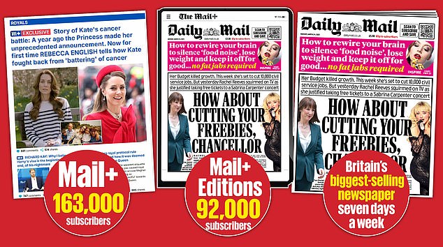 In addition to being Britain’s top-selling print newspaper every day of the week, the Mail also boasts over 250,000 digital subscribers.