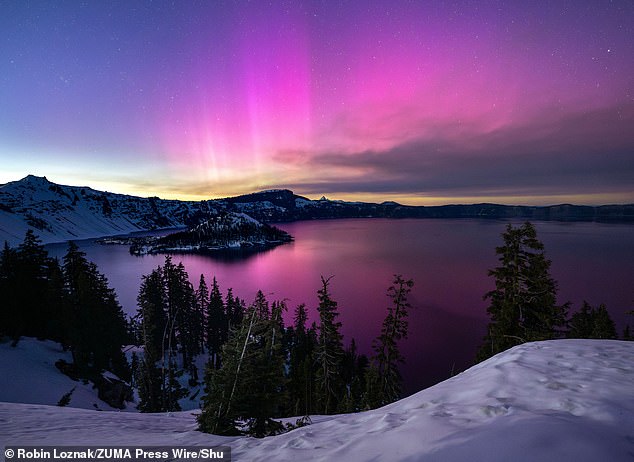In May 2024, a natural spectacle illuminated the region with a soft pink hue above the water and nearby mountains, offering breathtaking vistas during a uncommon event in this location.