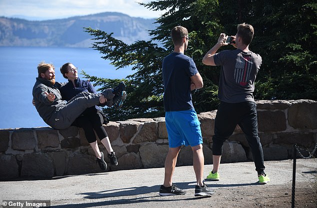 Day trippers can enjoy diving from a nearby 11-meter cliff face into the clear blue depths of the waterway, which sits in the blown-out caldera of a once mighty volcano known as Mount Mazama.