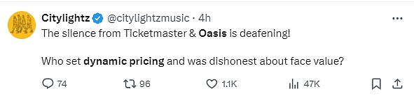 Ticketmaster claims this undesirable practice stems from market dynamics and asserts that the additional funds generated from the increased ticket prices for Oasis shows will benefit the band directly.