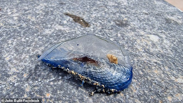 The unusual-looking creatures are actually By-the-wind-sailors, which frequently get swept onto land due to powerful winds.