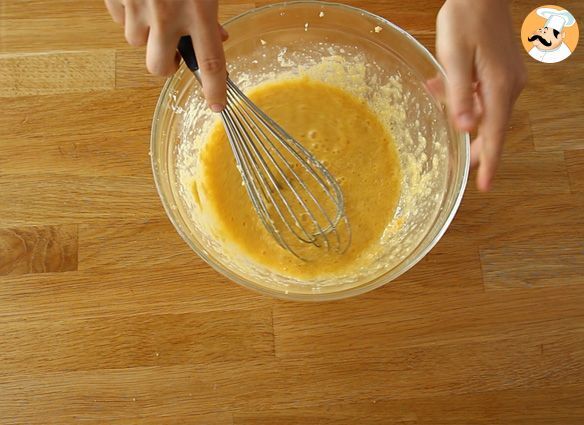 To prepare the dough: Use a hand mixer to blend the soft butter with the sugar until it becomes smooth. Incorporate the eggs and continue mixing until everything is thoroughly mixed.