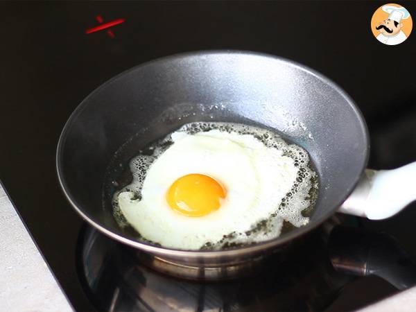 Sauté the egg and place it over the ham.