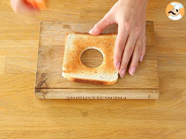 Utilize a cookie cutter to create a hole in the third piece of bread.