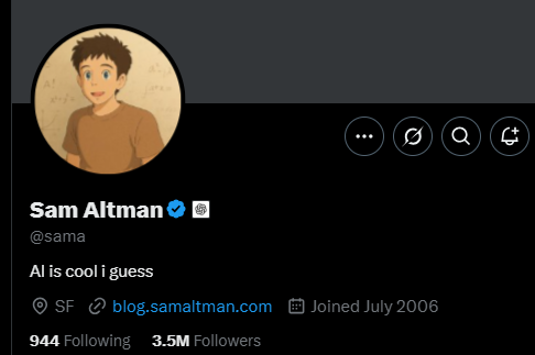 Altman likewise updated his profile photo on X to an illustration styled like those from Ghibli movies.