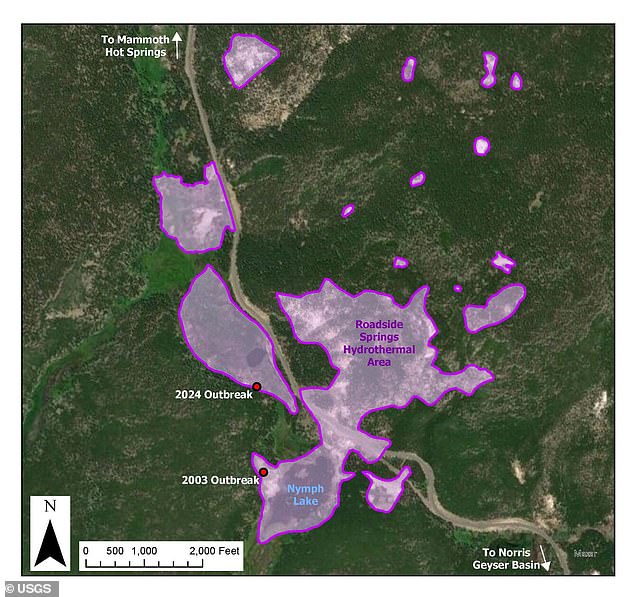 ‘While driving south from Mammoth Hot Springs towards Norris Geyser Basin early on August 5 last summer, a park scientist noticed a billowing steam column through the trees and across a marshy expanse,’ the USGS explained.